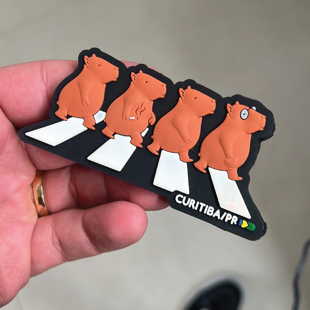 As capivaras mais famosas de Curitiba em versão divertida e criativa! Inspirado na clássica cena dos Beatles na Abbey Road, este ímã é perfeito para decorar sua geladeira ou coleção de lembranças.